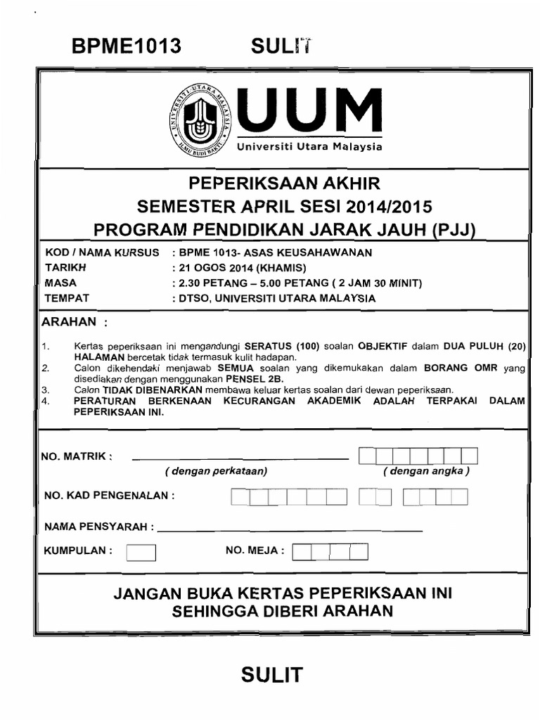 Related : Koleksi Soalan Peperiksaan Uum : Exam 2011 Questions Bpmn1013 Universiti Utara Malaysia Peperiksaan Akhir Plk Studocu / Koleksi soalan peperiksaan percubaan upsr 2017 dan upsr 2016 + skema jawapan (semua mata pelajaran)..